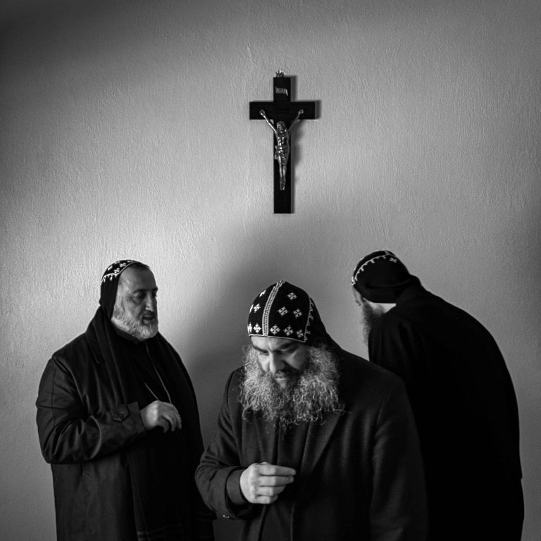 Across Damascus, Aleppo, and Hama, Salwan documents the war’s aftermath: bombed-out buildings, abandoned homes, and a society emerging from dictatorship. He revisits St. Ephraim Monastery in Maarat Sednaya, where he once lived as a refugee, and reconnects with Monk Hanna—now old and forgetful, yet still a symbol of solace.