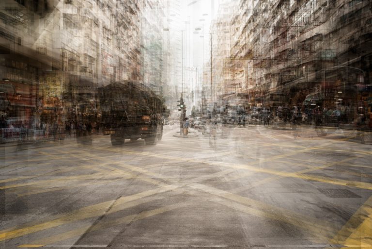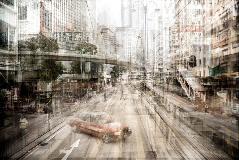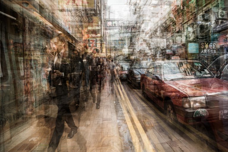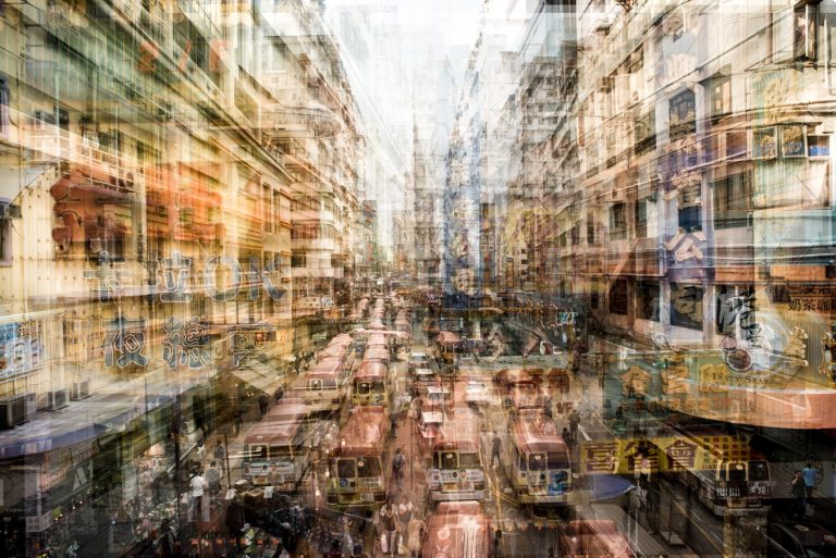 The Hong Kong series shifts attention to the architecture of the city itself. Dense verticality, interlaced lines, and layers of structure dominate the frame, with people appearing small, transient, and absorbed into their environment. Even in portraits, the geometry and compression of the city remain the true subject, shaping movement and perception alike.