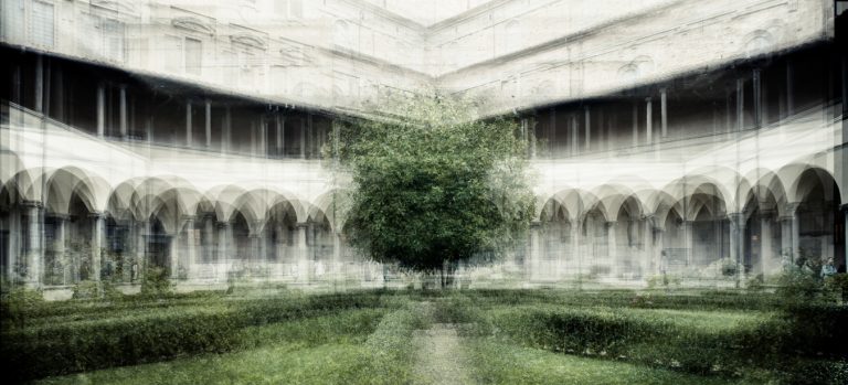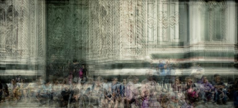Firenze, Magherini’s birthplace, is presented as a tapestry of layered memories. The series gathers threads formed over hours, days, and seasons, weaving them into visual carpets where memory and image are intertwined. Figures blend into the cityscape, moving quietly through architecture that needs no explanation, only careful observation.