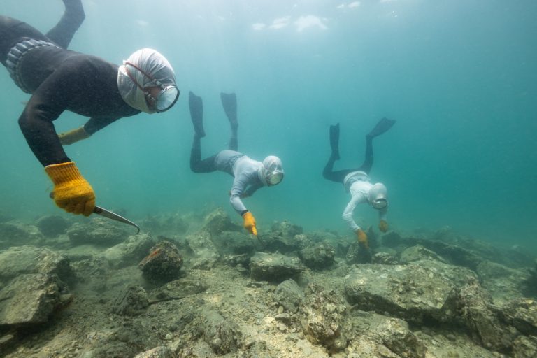 Japan’s ama divers have been freediving for more than 2,000 years. Kelp forests are significantly important to these ama fishers because kelp is the primary food source of abalone, their most valuable catch. Despite careful community-based management in fishing cooperatives, landings of prized abalone have severely declined as kelp forests have disappeared. In 2023, we visited Japan to explore how climate change threatens the remaining ama divers and kelp forests and revisited places that National Geographic photographer Luis Marden photographed for his 1971 Magazine feature. We found several of the same ama divers still diving 50 years later.